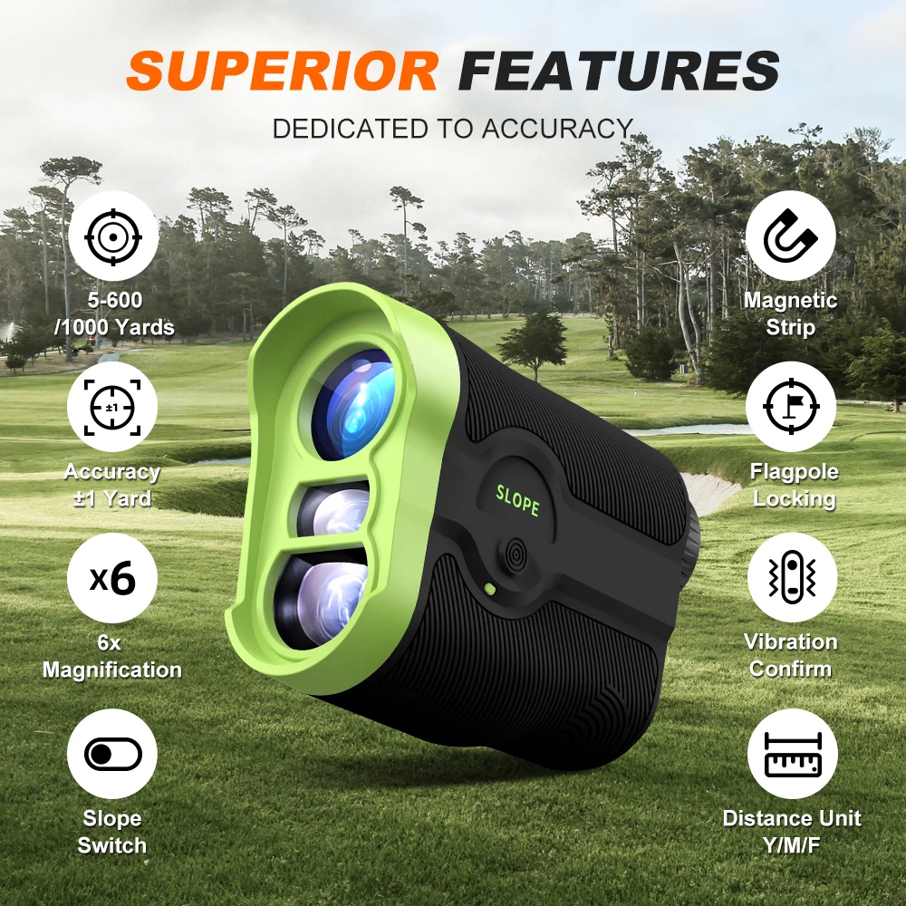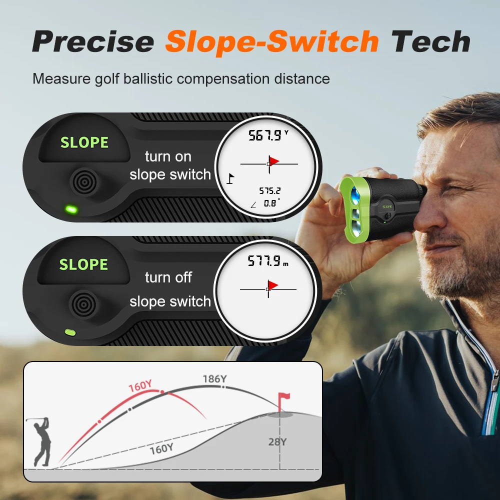 1.Slope Switch – Fast and Trustworthy: Golf rangefinders can be used for both golf tournaments and novice teaching. Slope compensation of this range finder could be turned on/off in compliance with golf tournament licensing regulations.
