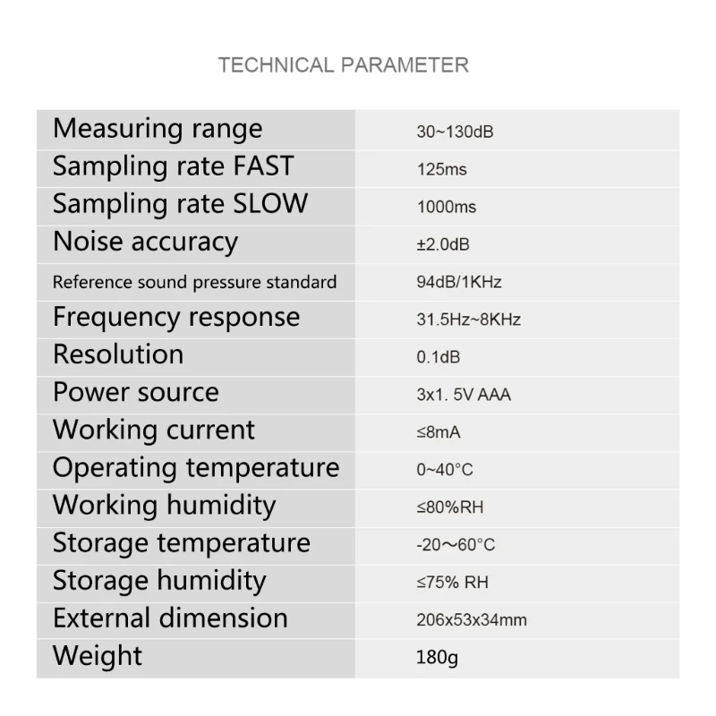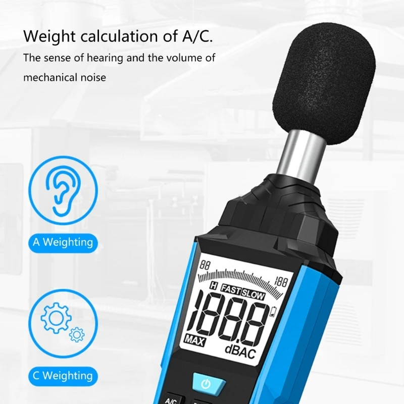 It is light weight and ergonomic, making it a-fine tool for monitoring noise intensity, suitable for sound quality control in factory, office, home, school and construction site.