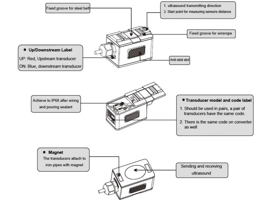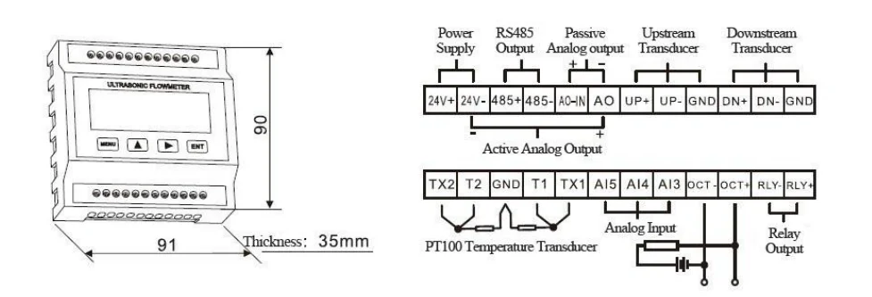The meter has the advantages of small size, complete functions and low cost. Using guide rail installation, it is suitable to be installed in instrument box or distribution pane.  Optional types of transducers, measuring range from DN15-DN6000mm. No need to stop water.